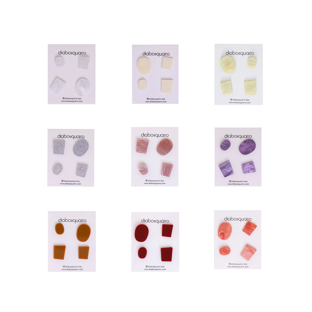 Brincos com design exclusivo. O duo é feito em acrílico e pode ser usado de diversas maneiras.