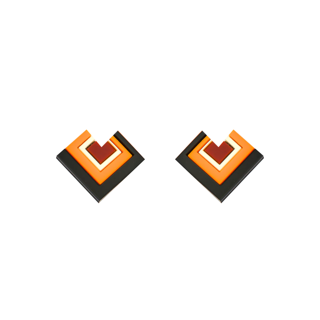Brinco com design exclusivo. Feito em acrílico nas cores bordô, amarelo escuro, off white e preto.