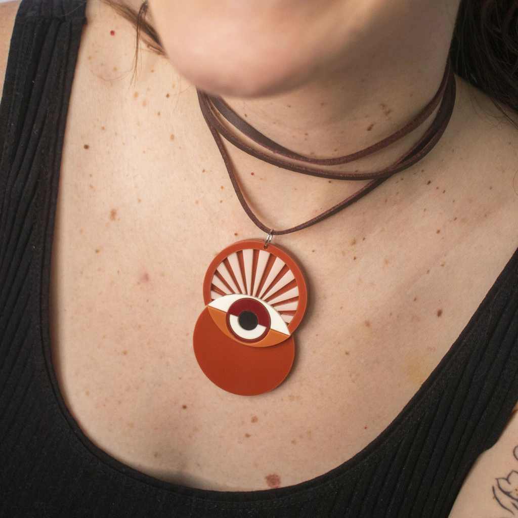 Colar com design exclusivo. Peça feita em acrílico nas cores terracota, creme, off white, goiaba, bordô e preto.